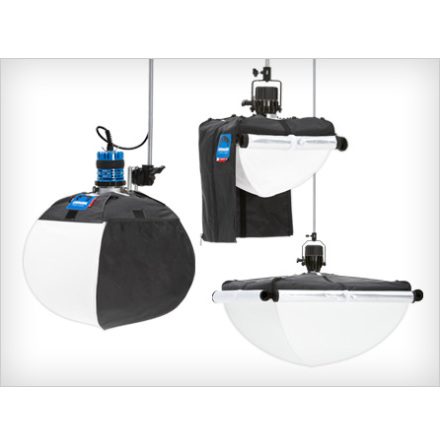 Create a soft 180 Deg. light source ideal for overhead lighting with the large Pancake Lantern from Chimera.